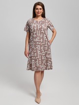 Платье из вискозной ткани с крэш-эффектом. Свободный силуэт с разрезом в боковом шве. По центру передней и задней части изделия выполнен шов. Цельнокроеная стойка, переходящая в V-образный вырез горловины, визуально делает фигуру стройнее. Цельнокроеный короткий рукав. В комплекте пояс из основной ткани.