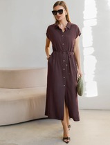 09.04 Vilatte Длинное платье-рубашка с поясом и разрезами изо льна с вискозой D