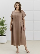 Платье из меланжевого эластичного полотна. Полуприлегающий силуэт, с разрезом в боковом шве. Цельнокроеный короткий рукав. Круглый вырез горловины.