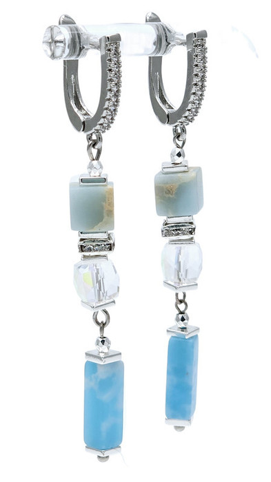 Варисцит, агат, хрусталь, циркон, кристаллы Preciosa, ювелирный сплав. Гальваническое покрытие: родий.