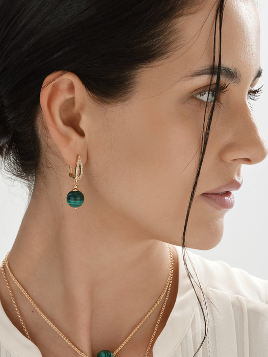 Натуральный малахит, цирконы, ювелирный сплав. Гальваническое покрытие: золото.