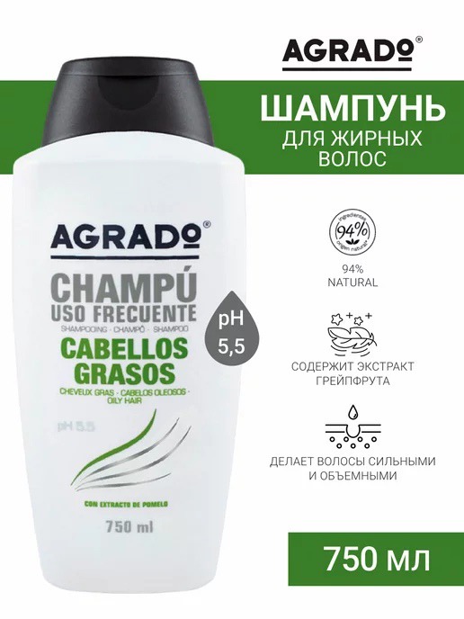 Совместные покупки Нижний Тагил Косметика и парфюмерия Шампуни — AGRADO Prof Шампунь для жирных волос Greasy hair Грейпфрут (Испания)