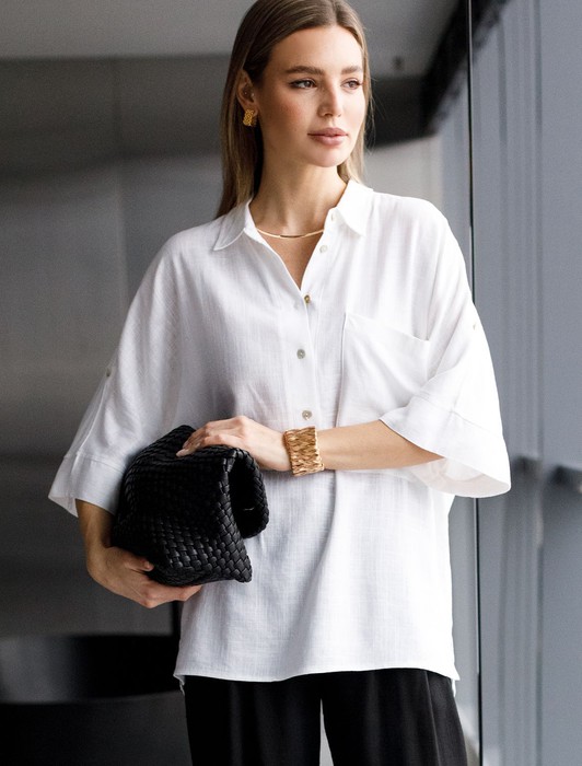 АКЦИЯ Блузка с цельнокроеным рукавом изо льна с вискозой