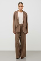 Брюки – длинные, на притачном поясе с эластичной тесьмой внутри и манжетами по низу. Передние половины – из двух частей каждая, со смещением соединительных швов в сторону боковых срезов. Соединительные швы передних половин с карманами. Пояс и манжеты выполнены из трикотажного полотна «кашкорсе».