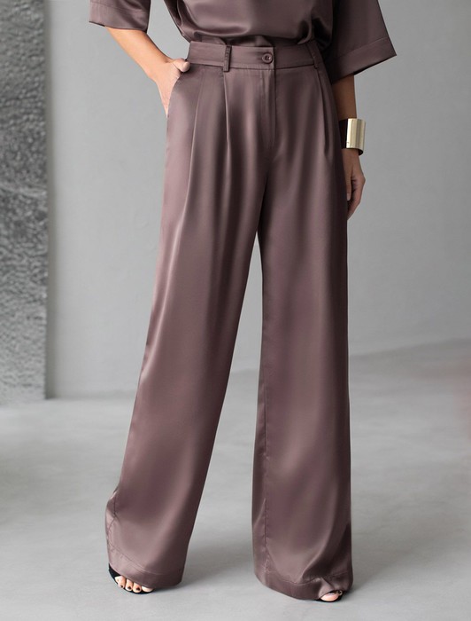 АКЦИЯ Брюки палаццо широкие из струящегося сатина