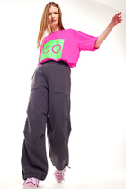 Брюки-карго прямые, свободной формы. Верх на притачном поясе со шлёвками. Застёжка на поясе на кнопку. В пояс по  спинке вставлена  резинка.  Застёжка на молнию. По переду накладные  карманы. По бокам накладные карманы с клапаном.  По переду складки в области колена.