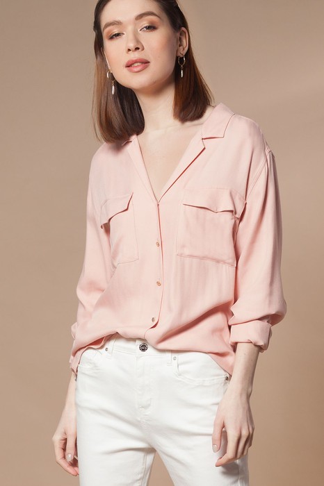 Состав: 100%ВисБлузка прямого силуэта. Выполнена из мягкой вискозы в рубчик. Плетение придает ткани плотности и легкого благородного блеска. Воротник с небольшим лацканом - тренд сезона. Карманы накладные с клапанами.