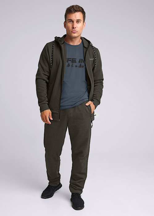Брюки мужские прямые из плотного футера с начёсом, пояс на резинке с регулируемым шнуром. Функциональности модели придают боковые карманы на молнии. Брюки очень эргономичные и удобные, прекрасно подойдут для повседневной носки.
