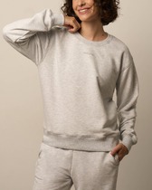 Вязаный джемпер умеренного объема из хлопковой пряжи с добавлением акрила. Короткий рукав со спущенной линией плеча. Длина рукава до локтя. Округлая горловина с бейкой. На детали переда нашивка.
