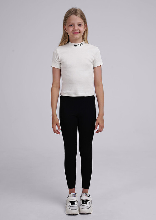 Невероятно модная футболка с воротником ""стойка"" выполнена из мягкого трикотажа в рубчик. Укороченная модель красиво подчеркивает стройность фигуры. Короткий рукав, минималистичный принт на воротнике. Смело миксуй модель с юбками или брюками.