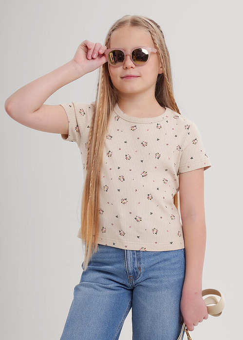Акция Clever Футболка детская для девочки CLE 867268шлн бежевый/зелёный