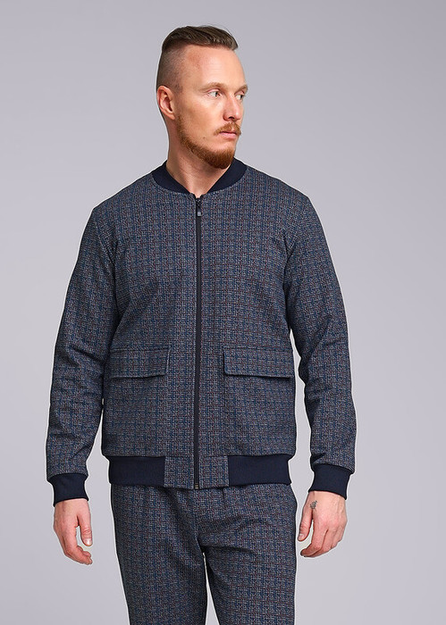 Мужской бомбер на молнии из трикотажного полотна футер в клетку. Накладные карманы, эластичные манжеты и пояс добавляют удобства в носке. Бомбер в стиле casual составит отличный комплект к брюкам и футболке.