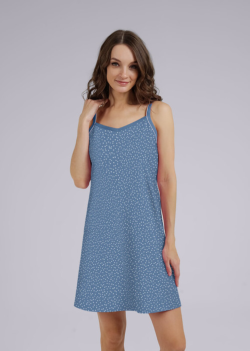 Ночная сорочка А-силуэта на тонких бретелях из 100% хлопка. Производство Узбекистан.