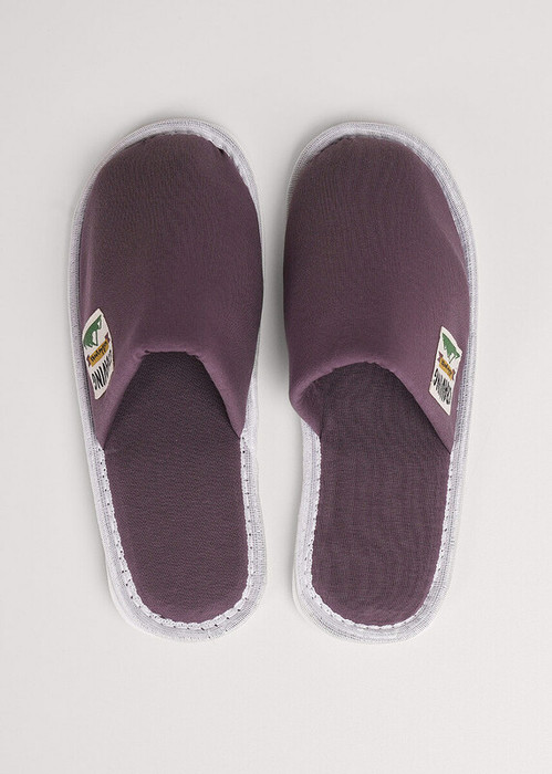 Лёгкие, домашние тапочки для дома с закрытым носом из хлопкового трикотажного полотна, нашивка. Толстая подошва.