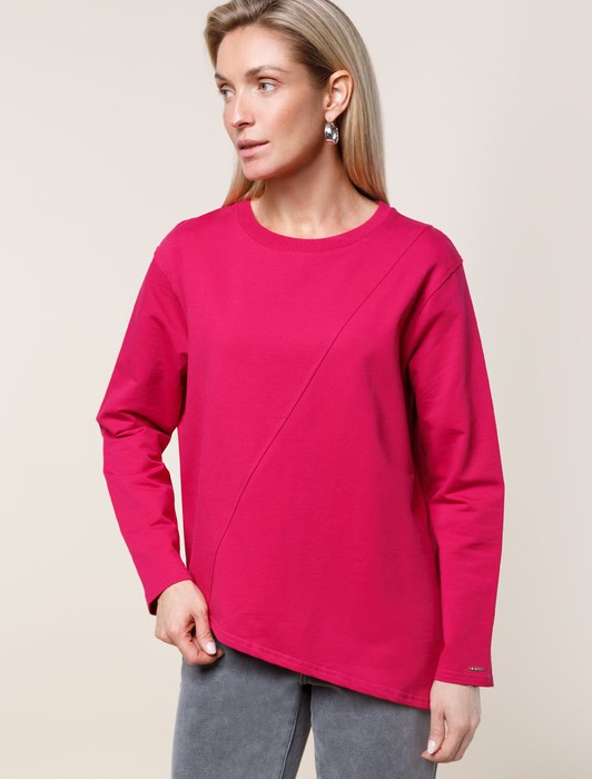 Состав: 92%Хлопок 8%ПУ Параметры модели на первом фото: Рост 172, бюст 88, талия 64, бедра 88Ассиметричный джемпер выполнен из премиального футера двухнитки. Спущенная линия плеча поддерживает расслабленный образ, который особенно хорошо будет сочетаться в костюме с брюками D44.122, D44.123 и D44.128. Наличие эластана в составе изделия гарантирует идеальную посадку и комфорт.