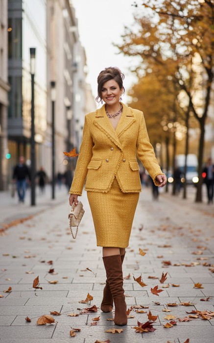 Роскошный костюм в стиле шанель ярком оттенке будет отличным дополнением люого гардероба. Жакет полуприлегающего силуэта с двубортной застёжкой по борту. Воротник пиджачного типа с лацканами; по переду жакета рельефы и карманы с клапаном. Спинка в жакете со средним швом и талиевыми вытачками. Рукав втачной, двухшовный с имитацией шлицы по низу рукава. В качестве дополнительной декоративной отделки жакета отделка бахромой из основной ткани. Жакет на подкладке. Юбка прямая с притачным поясом, для максимального комфорта в поясе по бокам предусмотрена резинка. Застёжка по спинке на молнию в среднем шве и пуговицу в поясе. В среднем шве по низу отлетная шлица. Юбка на подкладке. Длина спинки 66 см (50р-56р), 66,5 см (56р-60р). Длина рукава 61 см. Длина юбки с поясом 68 см (50-54), 69,5 см (56-60).
