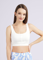 Кроп-топ – из полотна «рибана» без рукавов, с горловиной овальной формы, обработанной окантовкой из основного материала и притачным поясом по низу. В центре пояса настрочен декоративный элемент.