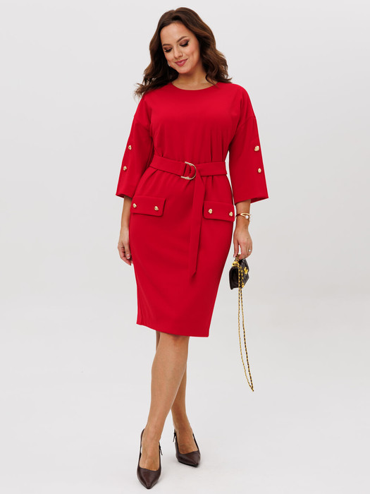 Нарядное платье из трикотажного крепа с мелким блеском станет прекрасным выбором для вечерних мероприятий,корпоративных встреч и праздничных торжеств.Особенностью этого стильного платья является его прямая модель ,которая подчеркивает женстсвенность и элегантность.Платье подходит для полных женщин. Платье прямого силуэта с нагрудными вытачками.Рукав спущенный с декоративной шлицей и пуговицами. Декором платья являются клапаны и пуговицы.Пояс эффектно подчеркивает талию.