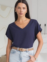 Футболка с V-вырезом и цельнокроеным рукавом из премиального хлопка