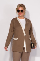 Выполнен из мягкой полушерстяной пряжи. Шерсть мериноса в составе сохраняет тепло, акрил делает изделие мягким. Прямой силуэт идеально подходит как к юбке, так и к брюкам.