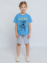 Комплект трикотажный для мальчика серо-голубой из супрема пенье: футболка и шорты. Футболка с коротким рукавом и принтом в виде динозавра. Шорты спортивные в расцветке серый меланж. Базовый детский костюм из натурального хлопка подойдет для домашней носки, занятий спортом и активного отдыха.Характеристики:Ткань: супрем пенье 92% хлопок 8% эластан/ ткацкое полотноПроизводитель: batik