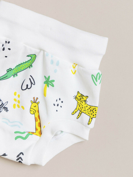 Трусы для девочки белые с принтом из ткани интерлок пенье. Трусики для малышей выполнены из мягкого хлопка высшего качества, подойдут в качестве носки на подгузник. Выполнены из легкого трикотажного полотна, в составе которого хлопок 100%, обеспечивающий максимальную мягкость при использовании. Широкая эластичная резинка и яркий принт в виде животных.Характеристики:Ткань: 100% хлопок интерлок пеньеПроизводитель: batik