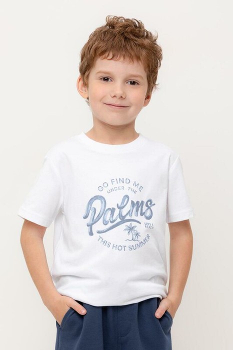 Футболка для мальчика из высококачественного трикотажного полотна. Оригинальный принт выполнен из стойких текстильных гипоаллергенных красителей. Для удобства в размерах 92 и 98 на плече есть застежка на кнопки.