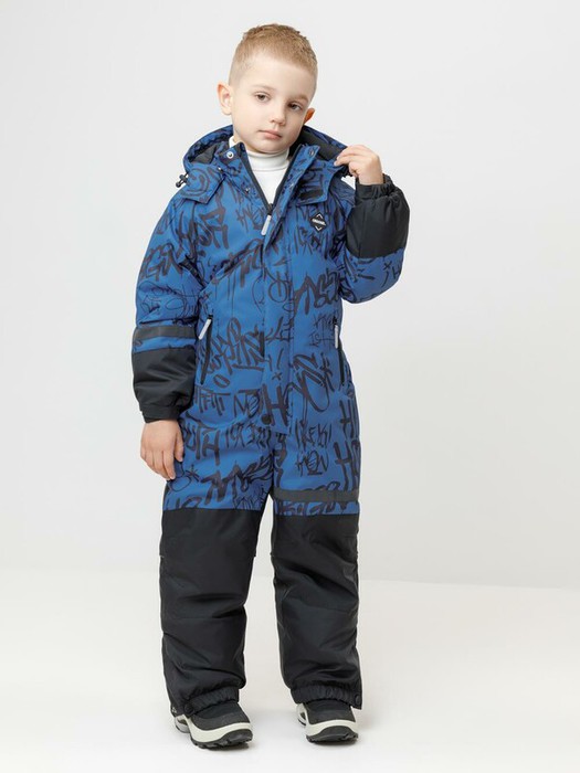 Зимний комбинезон для мальчика с утеплителем Fellex®: 250 г/м2 . Выполнен из мембранной ткани с дополнительной тефлоновой обработкой, которая предохраняет изделие от загрязнений и отталкивает влагу. Подклад выполнен из 100% полиэстера Tricot. Комбинезон застёгивается на молнию и внешнюю планку на липучках и кнопках, предусмотрена защита подбородка. Съёмный капюшон имеет эластичную утяжку со стопперами. Резинка по спинке обеспечивает лучшее прилегание. По бокам два кармана на молнии. Эластичные манжеты на рукавах  регулируются по ширине с помощью липучки, по низу изделия - с помощью кнопки. Внутренняя противоснежная юбка защищает обувь от попадания снега и удерживает комбинезон в закреплённом положении, предусмотрены отстёгивающиеся штрипки. Во всех изделиях верхнего ассортимента для безопасности ребёнка предусмотрены светоотражающие элементы.
