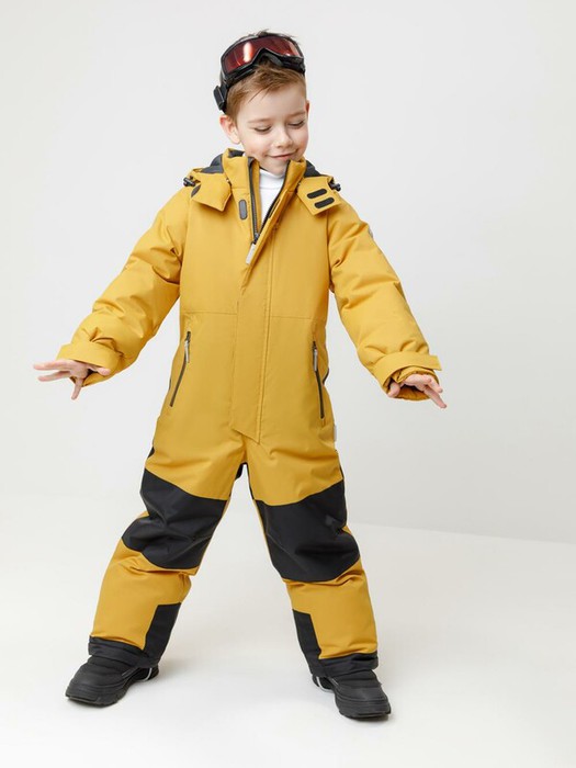 Зимний комбинезон для мальчика с утеплителем SEE®: 250 г/м2 . Выполнен из мембранной ткани с дополнительной тефлоновой обработкой, которая предохраняет изделие от загрязнений и отталкивает влагу. Подклад выполнен из 100% полиэстера Tricot. Комбинезон застёгивается на молнию и внешнюю планку на липучках и кнопках, предусмотрена защита подбородка. Съёмный капюшон имеет эластичную утяжку со стопперами. Резинка по спинке обеспечивает лучшее прилегание. По бокам два кармана на молнии. На рукавах дополнительние внутренние манжеты, ширина регулируются с помощью липучки. Внутренняя противоснежная юбка по низу изделия защищает обувь от попадания снега и удерживает комбинезон в закреплённом положении. В размерах с 98-104 по 116-122 предусмотрены отстёгивающиеся штрипки. Во всех изделиях верхнего ассортимента для безопасности ребёнка предусмотрены светоотражающие элементы.