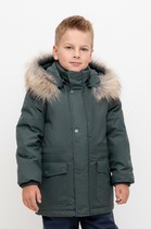 Пальто для мальчика с натуральным утеплителем из гипоаллергенного гусиного пуха (70%) и пера (30%). Рекомендованный температурный режим - от -5° до -30°.