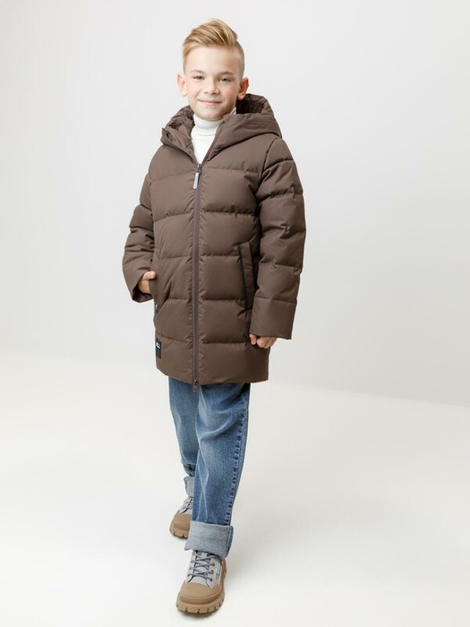 Зимнее пальто для мальчика с натуральным утеплителем из гусиного пуха (70%) и пера (30%). Выполнено из мембранной ткани с дополнительной тефлоновой обработкой, которая предохраняет изделие от загрязнений и отталкивает влагу. Подклад выполнен из 100% полиэстера. Пальто застёгивается на молнию, предусмотрена защита подбородка. Несъёмный капюшон имеет эластичные утяжки. По бокам два кармана на молнии, так же имеется внутренний карман. В рукавах мягкие внутренние манжеты. Во всех изделиях верхнего ассортимента для безопасности ребёнка предусмотрены светоотражающие элементы.