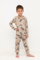 Трикотажная пижама из натурального хлопка. Джемпер с длинными втачными рукавами и брюки с эластичной резинкой в поясе. Мягкие манжеты на рукавах и по низу брюк. Оригинальная набивка и принт выполнены из стойких текстильных гипоаллергенных красителей. Изделие сохраняет цвет и форму после многократных стирок. Все трикотажные полотна производятся в соответсвии с нормами швейцарского сертификата ЭкоТекс.