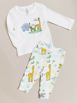 Трикотажный пижамный комплект из натурального хлопка. У футболки короткие рукава. Брюки с удобным поясом на резинке и утягивающим плетеным шнуром. Оригинальная набивка и принт выполнены из стойких, гипоаллергенных текстильных красителей. Все трикотажные полотна производятся в соответствии с нормами Швейцарского сертификата ЭкоТекс.