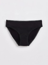 Трусики формы Brief со средней посадкой выполнены из нежного кружевного полотна. Мягкая резинка, подгиб и плоский шов  по верхнему срезу трусиков и краю ножек спереди и  ажурный край сзади .