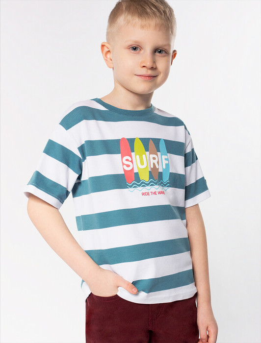 Совместные покупки Нижний Тагил Детская одежда Футболки, майки — Акция Vilatte Футболка из фактурного трикотажа с авторским принтом M49.407 морс