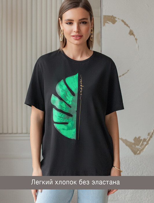 Совместные покупки Нижний Тагил Женская одежда Футболки — Акция Vilatte Футболка из премиального хлопка с авторским принтом D49.089 черны