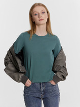 Футболка выполнена из трикотажа в широкий рубчик. Базовая модель с круглым вырезом и рукавом до локтя. Эластичный хлопковый трикотаж сидит по фигуре, не сковывает движений и очень комфортный в носке. Фактура вертикальных полос визуально стройнит и вытягивает силуэт. Базовое изделие хорошо впишется в любой гардероб. Идеально подходит для многослойных образов в базовый гардероб.