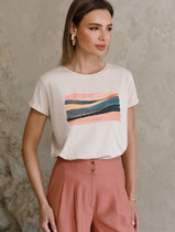 Совместные покупки Нижний Тагил Женская одежда Футболки — Акция Vilatte Футболка с принтом свободная эластичная из премиального хлопка D4