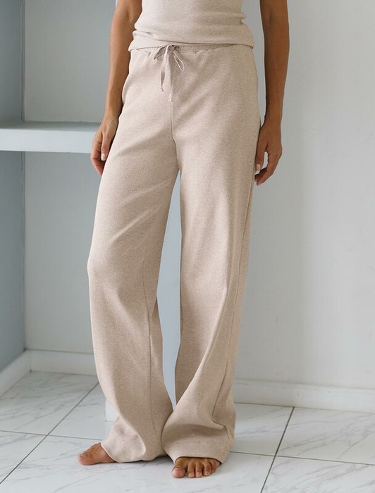 Брюки прямого кроя выполнены из фактурного трикотажа в рубчик. Благодаря мягкой хлопковой ткани в рубчик, брюки комфортно сидят по фигуре и не будет стеснять движения. Эластан в составе гарантирует формоустойчивость изделия. Сочетаются в костюме с топом D43.183, футболкой D49.005 и лонгсливом D49.012