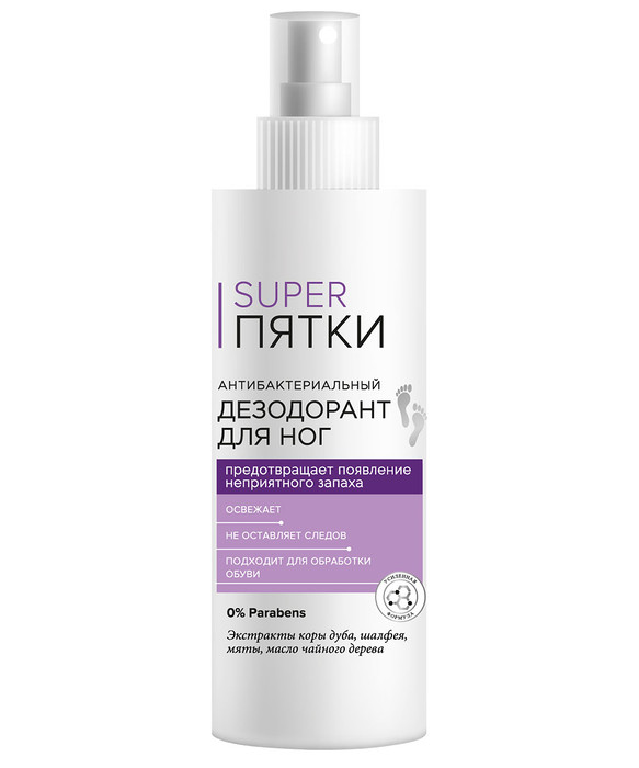 Профессиональная формула дезодоранта с антибактериальными компонентами надежно защищает кожу ног от появления неприятного запаха и дарит чувство свежести и комфорта в течение всего дня. Экстракты коры дуба, шалфея и мяты освежают и предотвращают размножение бактерий. Масло чайного дерева смягчает и успокаивает кожу. Дезодорант не оставляет следов и идеально подходит для ежедневного применения.