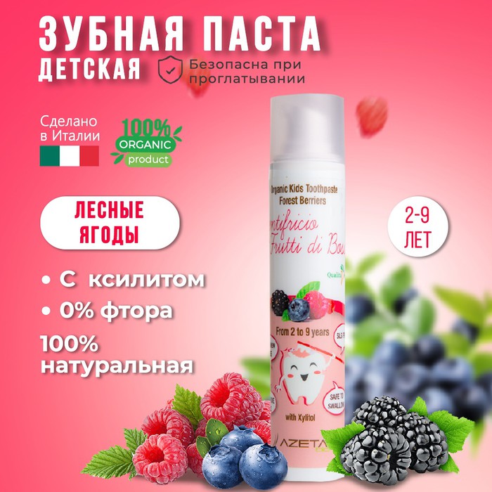 Совместные покупки Нижний Тагил Детские товары Косметика для детей — AZETABIO Зубная паста детская органическая с ксилитом 2-9 лет, Лесные ягоды