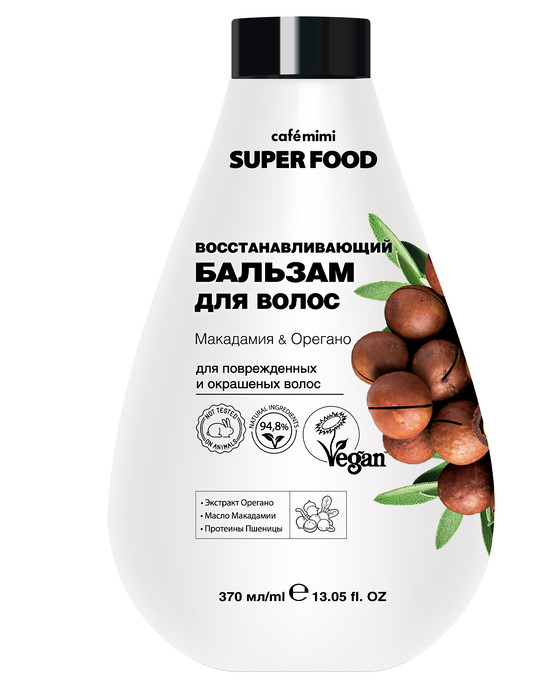Бальзам для волос Восстанавливающий Макадамия & Орегано, cafe mimi, насыщает волосы жизненной силой, восстанавливает, делает более послушными, придает объем.