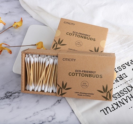 Бамбуковые ватные палочки в экологичной упаковке, 200 шт.