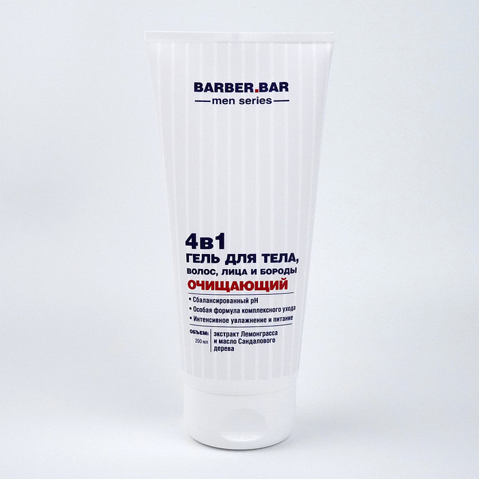 Совместные покупки Нижний Тагил Хозтовары и личная гигиена Гели для душа, соли, пены для ванн — BARBER BAR Гель для тела, волос,лица и бороды 4 в 1 Очищающий 200мл
