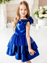 Нарядное синее платье с пышной многослойной юбкой из фатина. Объемные рукава, бант сзади, блестки. Подкладка 100% хлопок. Характеристики:Размеры (рост): 98-134Ткань верха: Сатин - Полиэстер Сетка - ПолиэстерПодкладка 100% хлопокПроизводитель: batik