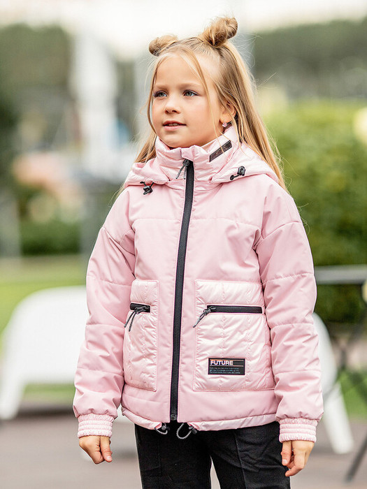 Куртка для девочки Вера демисезонная розовая с утеплителем. Материал с ветро- и водоотталкивающим покрытием. Украшена нашивками с надписями. Съемный капюшон регулируется с помощью шнурка-кулиски со стопперами. Центральная застежка на молнию с защитой подбородка. Особенности: Съемный регулируемый капюшонСпущенная линия проймыКарманы с вертикальной и горизонтальной молниейСовмещение матовой ткани и ткани с металлизированным эффектомРегулировка по низуСветоотражающие элементыЭластичные манжеты рукавов Характеристики:Ткань верха: Twill stretch (мембрана) Подклад: T/CУтеплитель: 150 гр Температурный режим от +10 до -5 СПроизводитель: batik