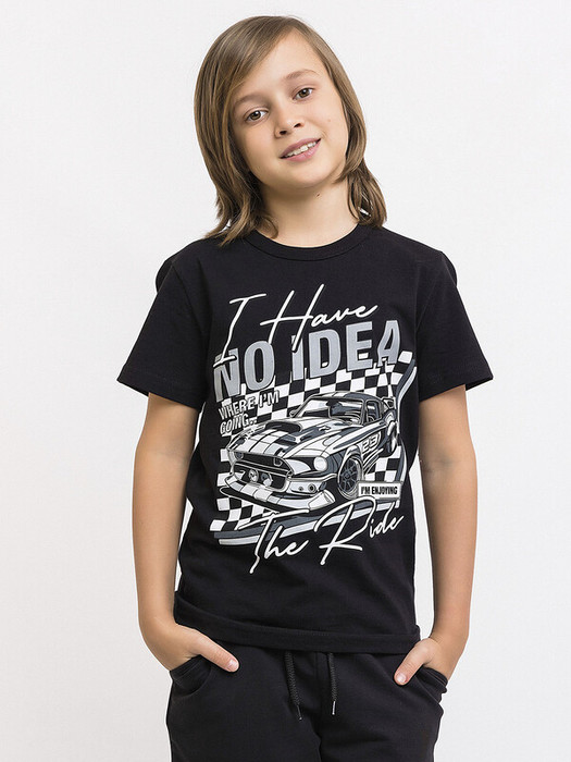 Футболка с коротким рукавом для детей и подростков из натурального хлопка. Расцветка черная, контрастный принт спереди. Классический круглый вырез – удобная посадка, не натирает шею. Футболка идеальна для прогулок и активных игр. Легко комбинируется с любой детской одеждой: брюками, шортами, джинсами.Характеристики:Ткань: 100% хлопокПроизводитель: batik