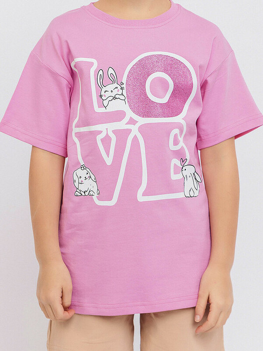 Футболка для девочки розовая с коротким рукавом из супрема пенье. Создана из натурального хлопка с небольшим добавлением эластана. Круглая горловина, принт в виде надписи с зайчатами. Продуманный крой рассчитан на девочек разной комплекции.Характеристики:Ткань: Супрем пенье 92% хлопок 8% эластанПроизводитель: batik