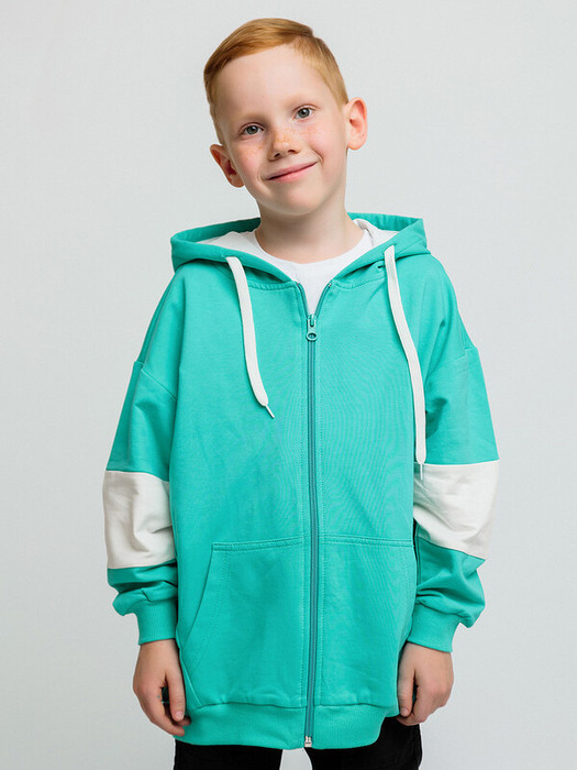 Толстовка для мальчика в мятной расцветке из футера с капюшоном и боковыми карманами. Состоит из хлопка и эластана. Качественная молния-застежка, эластичные манжеты рукавов, свободный крой.Характеристики:Материал: Футер 2х нитка 95% хлопок 5% эластанПроизводитель: batik