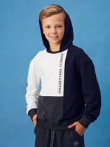 Жилет для мальчика из футера черно-оранжевый с рукавами и капюшоном. Принт с надписями.